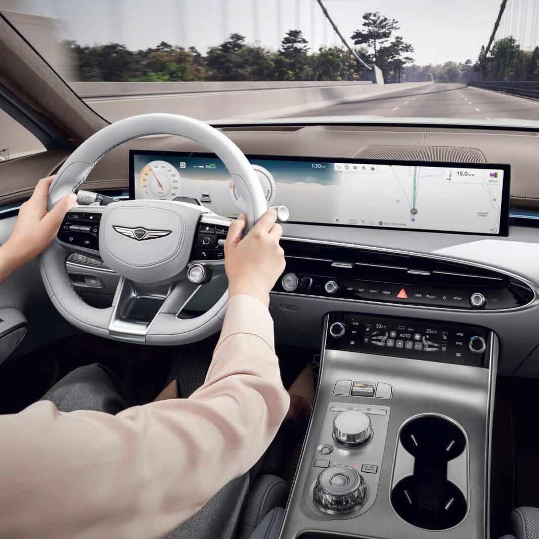 GV70 EV הוא רכב חשמלי מתקדם עם שני מנועים חשמליים בעלי הספק משולב של 489 כוחות סוס, הנעה כפולה ומערכת חשמל 800V. נתונים טכניים אלו מתרגמים לביצועים מעודנים וחסרי מאמץ בכל דרך ולחוויית נהיגה ונסיעה עוצמתיות.